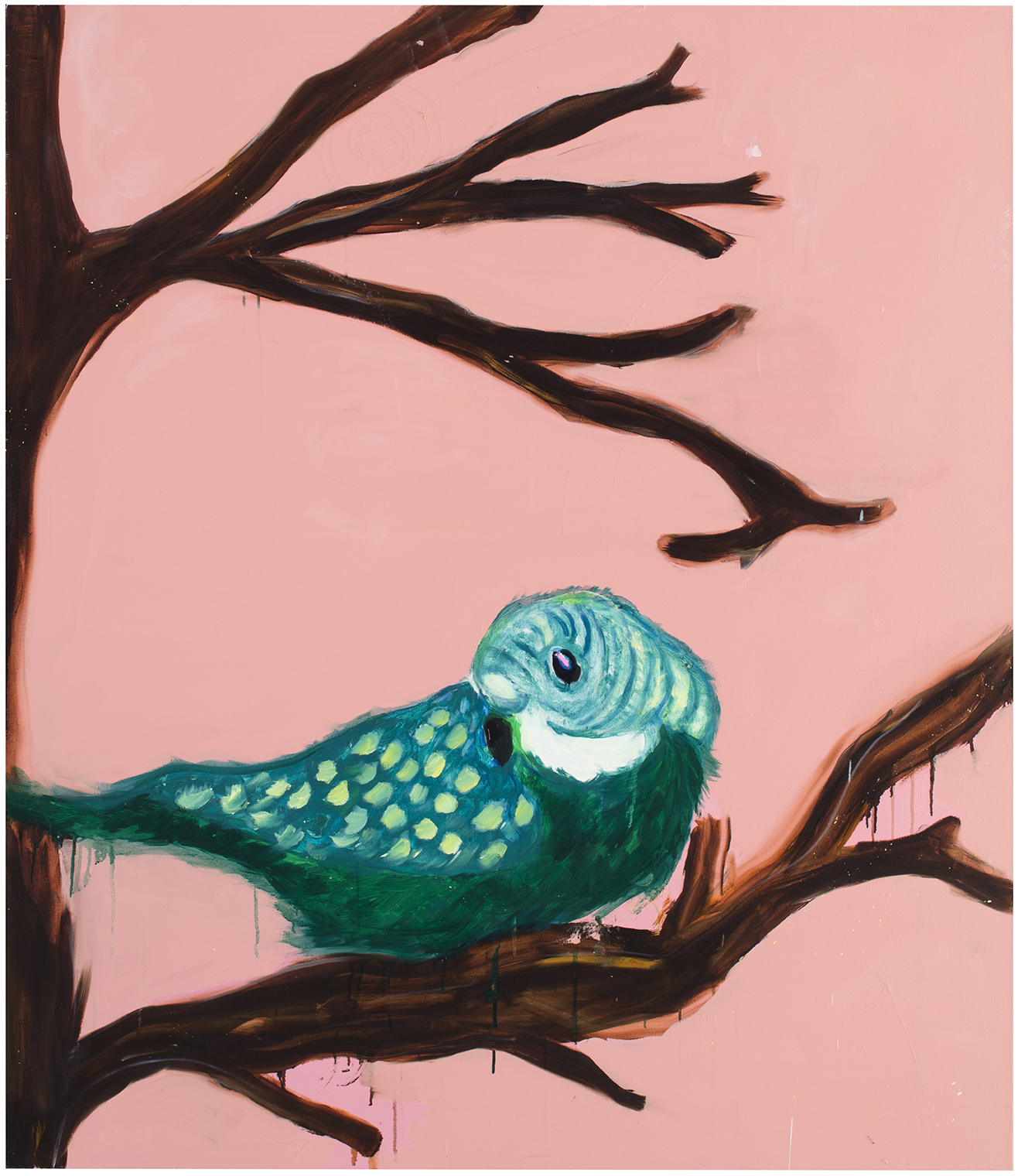 Rauha Mäkilä is known for her brightly coloured paintings depicting everyday occurrences, drawing from both popular culture and the artist’s own life and family. Her works, often featuring children, reveal the profound sincerity of their subjects, and an unreserved glorification of the joy of being young. Recently, Mäkilä has reflected on her own position and work as an artist. Her hectic neon world has occasionally shifted towards earthier tones, revealing the more sombre mysticism of youth, the silent strength, and the vacillation between different roles. Her most recent works ponder the state of the world through her characteristic imagery. She responds to the pitilessness of today’s world with art, and to cruelty with beauty.