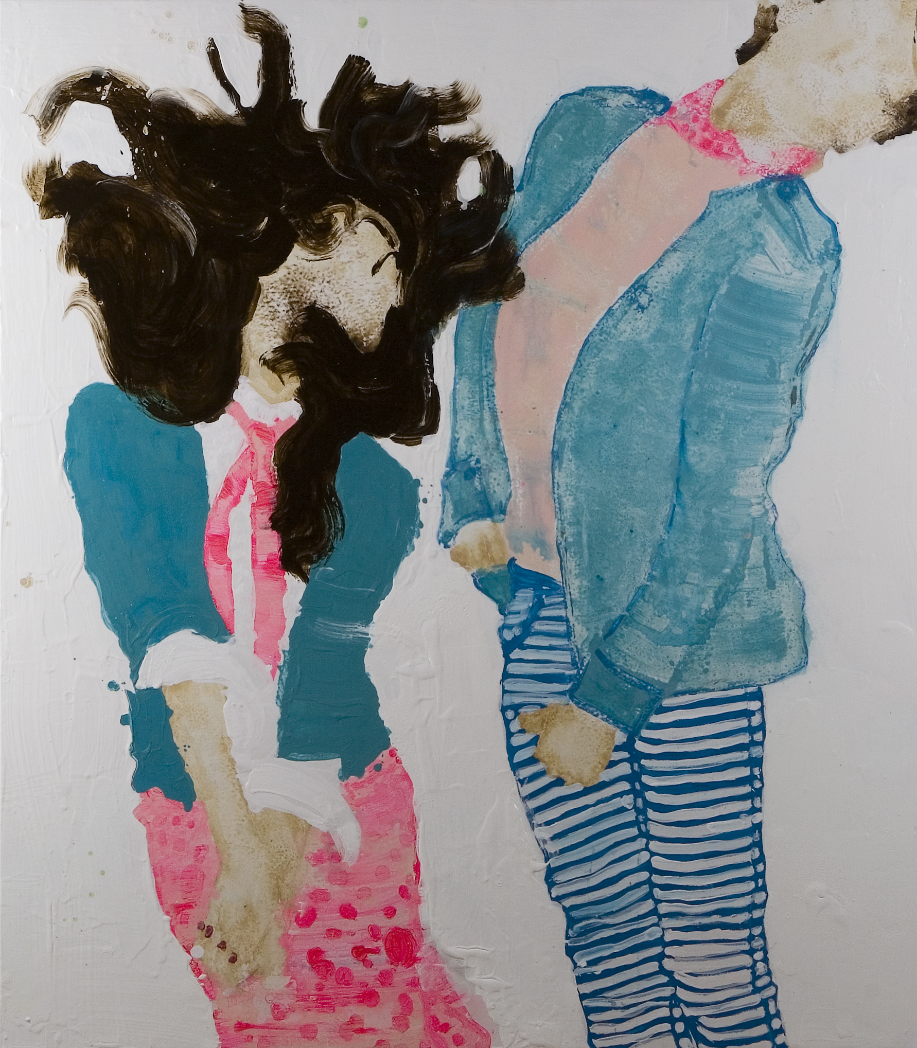 Rauha Mäkilä is known for her brightly coloured paintings depicting everyday occurrences, drawing from both popular culture and the artist’s own life and family. Her works, often featuring children, reveal the profound sincerity of their subjects, and an unreserved glorification of the joy of being young. Recently, Mäkilä has reflected on her own position and work as an artist. Her hectic neon world has occasionally shifted towards earthier tones, revealing the more sombre mysticism of youth, the silent strength, and the vacillation between different roles. Her most recent works ponder the state of the world through her characteristic imagery. She responds to the pitilessness of today’s world with art, and to cruelty with beauty.
