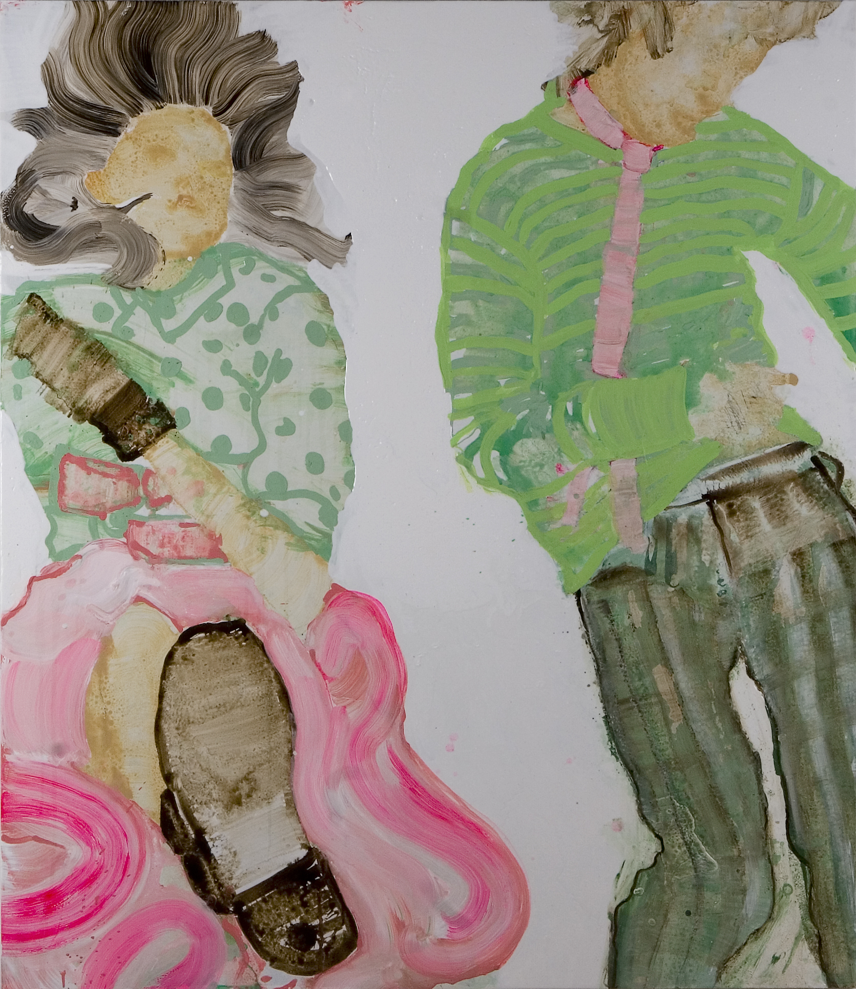 Rauha Mäkilä is known for her brightly coloured paintings depicting everyday occurrences, drawing from both popular culture and the artist’s own life and family. Her works, often featuring children, reveal the profound sincerity of their subjects, and an unreserved glorification of the joy of being young. Recently, Mäkilä has reflected on her own position and work as an artist. Her hectic neon world has occasionally shifted towards earthier tones, revealing the more sombre mysticism of youth, the silent strength, and the vacillation between different roles. Her most recent works ponder the state of the world through her characteristic imagery. She responds to the pitilessness of today’s world with art, and to cruelty with beauty.